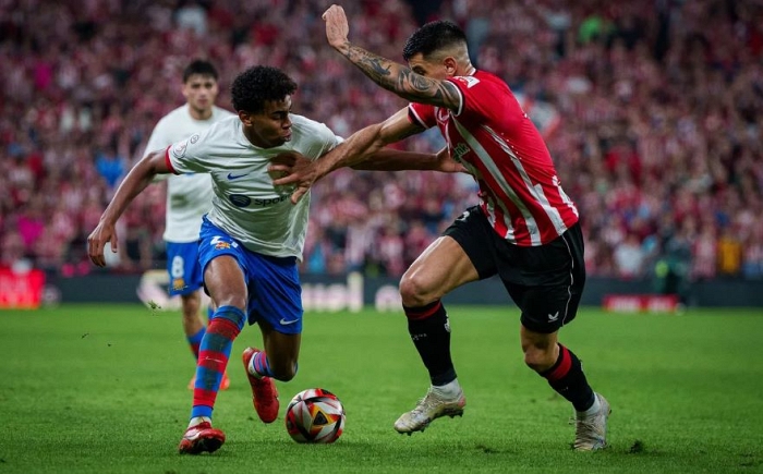 وعلى ملعب سان ماميس فاجأ بيلباو نظيره الكاتالوني بهدف مبكر بعد مرور دقيقة واحدة على صافرة البداية عن طريق جوركا جروزيتا، قبل أن يعود برشلونة ليقلب النتيجة بهدفين سريعين عبر ليفاندوفسكي (26) ولامين جمال (32)، لينتهي الشوط الأول بتقدم الضيوف.