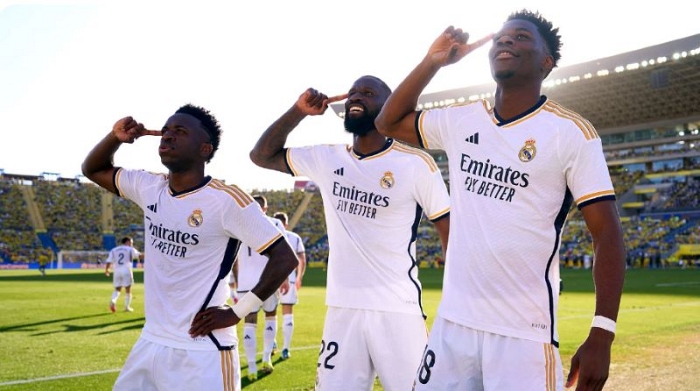 تصوير: موقع ريال مدريدوكان الأداء متوازنًا في الشوط الأول الذي انتهى بالتعادل السلبي بعدما فشل أي من الفريقين في هز الشباك. وأتى الهدف الأول من صاحب الأرض بفضل خافيير مونوز بعد 8 دقائق من انطلاق الشوط الثاني. وأدرك البرازيلي فينيسيوس جونيور التعادل عقب كرة من الفرنسي كامافينغا (65).