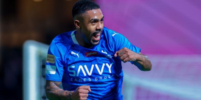 البرازيلي مالكوم دي أوليفيرا مهاجم فريق الهلال الأول لكرة القدم يحتفل بهدفه | المركز الإعلامي - نادي الهلال