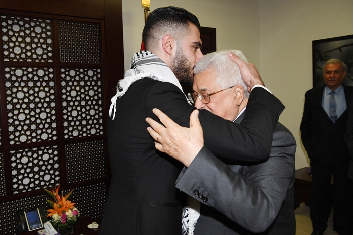 وفا | استقبل رئيس دولة فلسطين محمود عباس، اليوم السبت، بمقر الرئاسة في مدينة رام الله، الفنان الفلسطيني الفائز بلقب "محبوب العرب" يعقوب شاهين.