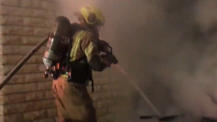 وعملت طواقم الإطفاء والإنقاذ على اخماد النيران ومنع إنتشارها الى جانب البحث عن عالقين.