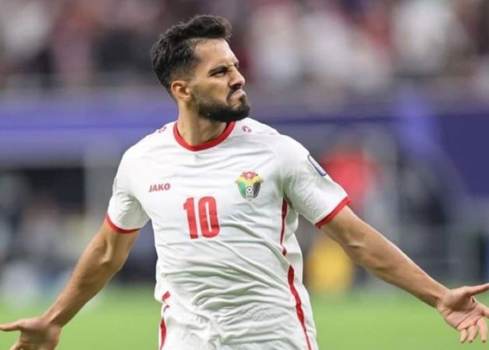 موسى التعمري بعد تسجيله الهدف | موقع منتخب الأردن