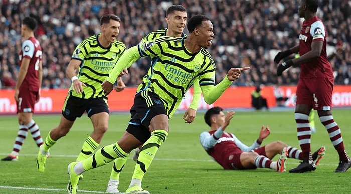 وسجل للمدفعجية، الفرنسي ويليام ساليبا 32، بوكو ساكا ثنائية 41 من ركلة جزاء و63، البرازيلي غابرييل ماغاليس 44، البلجيكي لياندرو تروسارد 45+2، ولاعب وست هام السابق ديكلان رايس 66.