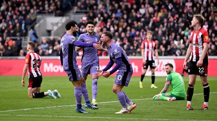 وعزز ليفربول موقعه في الصدارة برصيد 57 نقطة فيها تجمد رصيد برينتفورد عند 25 نقطة.
