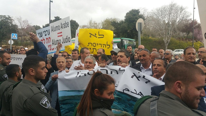 هذا ما قاله عضو لجنة الداخلية البرلمانية النائب د. عبد الله ابو معروف (الجبهة – القائمة المشتركة) في كلمته التي ألقاها أمام المتظاهرين في المظاهرة الجماهيرية الغاضبة التي جرت صباح اليوم الثلاثاء أمام وزارة المالية في القدس، والتي دعت اليها اللجنة القطرية لرؤساء السلطات المحلية العربية وجمعيات ومؤسسات المجتمع المدني، حيث تزامنت المظاهرة في وقت انعقاد جلسة خاصة للجنة الداخلية البرلمانية التي ستصوت هذا الاسبوع على إجراء تعديل - 109 على قانون التنظيم والبناء تحت اسم (كامينتس)، وشارك في التظاهرة رؤساء سلطات محلية عربية وجمهور غفير من مختلف أنحاء البلاد.