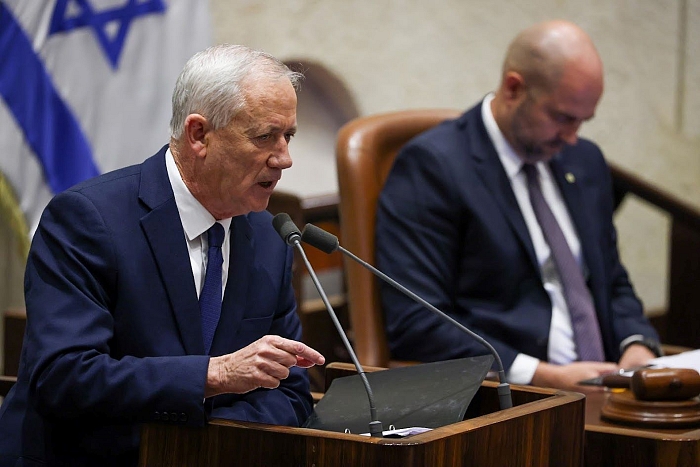 وتفاخر غانتس "بأننا أحضرنا الى الكنيست اليوم اقتراحًا للتصويت عليه يقضي بعدم قبول الاعتراف أحادي الجانب بالدولة الفلسطينية لأنني لا أرى ان هذا الأمر يخدم عملية السلام". وأضاف انه الى جانب الحسم العسكري ضد حماس في قطاع غزة ونزع السلاح من القطاع "علينا التقدم في مسار التطبيع مع السعودية"، دون ان يوضح كيف من الممكن تحقيق ذلك مع قرار الكنيست اليوم بشأن الدولة الفلسطينية، حيث تشترط السعودية التطبيع بتحقيق تقدم في هذا موضوع الدولة الفلسطينية.