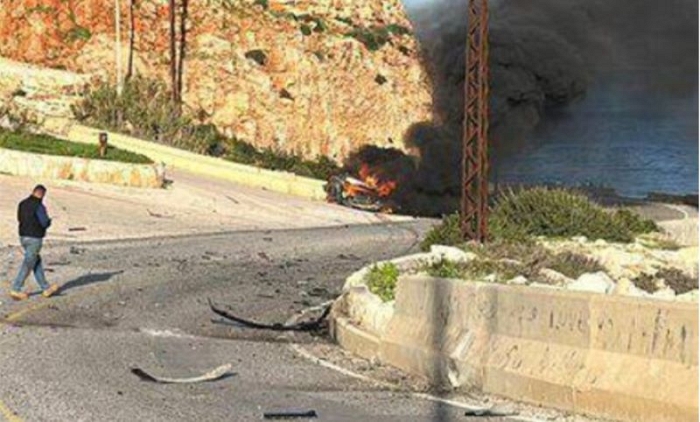 السيارة التي تم قصفها على طريق الناقورة جنوبي لبنان | مواقع التواصل