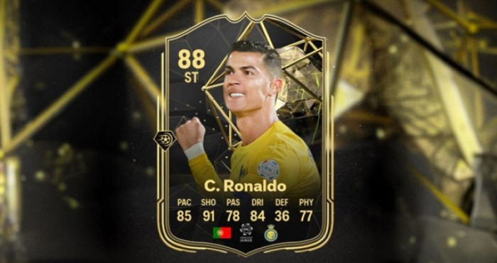 بطاقة كريستيانو رونالدو قائد فريق النصر الأول لكرة القدم في لعبة الفيديو "إف سي 24" | أرشيفية