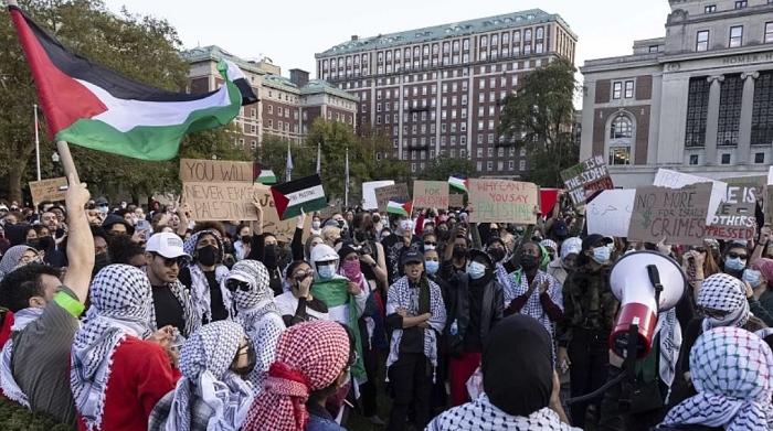 ونصب طلاب الخِيَم داخل حرم الجامعة الواقعة في مدينة نيويورك والمرتبطة ببرنامج تبادل مع جامعة تل أبيب، مطالبين بمقاطعة كل النشاطات المتعلقة باسرائيل في ظل الحرب المستمرة. وتتواصل التظاهرات داخل الجامعة لليوم السادس على التوالي.