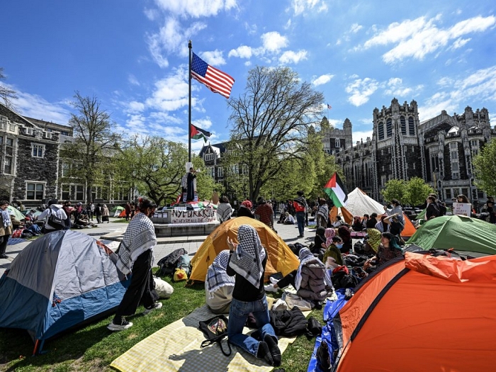 اعتصامات ومخيمات في الجامعات الأمريكية دعمًا لفلسطين | تصوير: مواقع التواصل