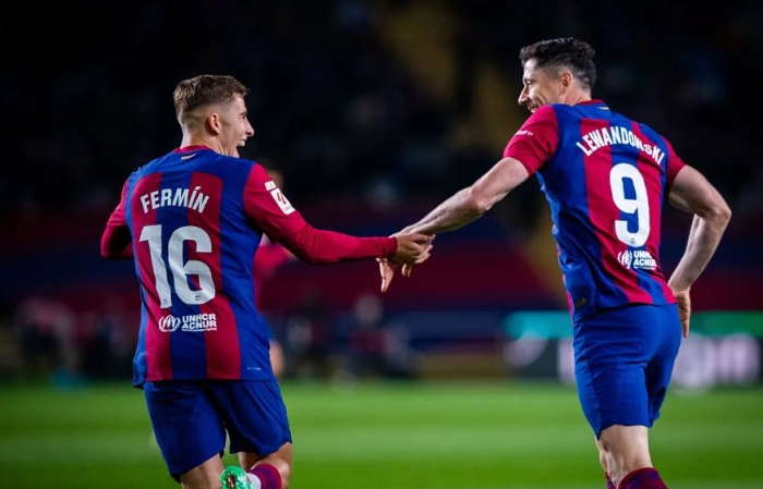 وسجل النجم البولندي روبرت ليفاندوفسكي هاتريك - ثلاثة أهداف في الدقائق 49 و82 و94 من عمر المواجهة، فيما سجل فيرمين لوبيز الهدف الأول لفريقه برشلونة في الدقيقة 22 من عمر الشوط الأول بتمريرة حاسمة من زميله رافينيا.