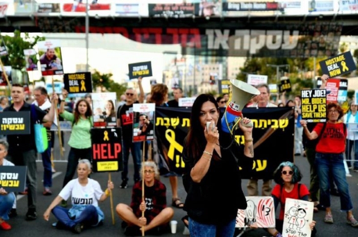 من المظاهرة أمام وزارة الأمن أمس لإبرام صفقة تبادل | تصوير: دانور أهرون