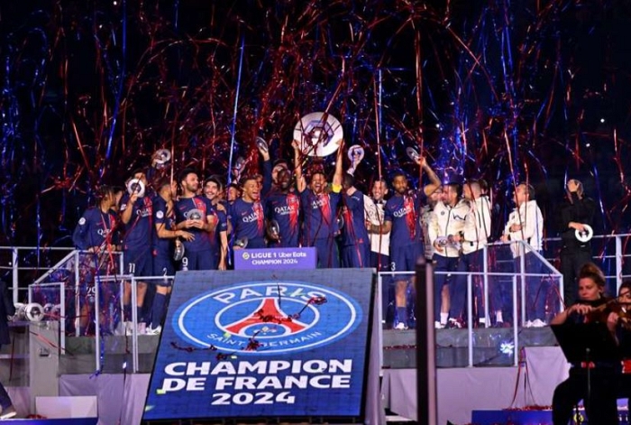 احتفل نادي باريس سان جيرمان بلقب الدوري الفرنسي في حديقة الأمراء، الأحد، عقب نهاية المباراة التي جمعت الفريق مع ضيفه تولوز ضمن الجولة 33 من البطولة.