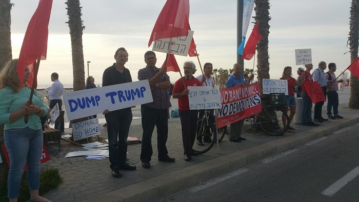 في التظاهرة أمام السفارة الامريكية الآن في تل ابيب احتجاجا على زيارة الرئيس الامريكي دونالد ترامب لاسرائيل قال النائب د. عبد الله ابو معروف، إن ترامب في دعايته الانتخابية قال، إن رئاسته ستكون هدية لاسرائيل وقاسية على الفلسطينيين، وانه سينقل سفارته للقدس وتعيين سفيرا لامريكا لتشجيع الاستيطان الاسرائيلي للاراضي الفلسطينية.
