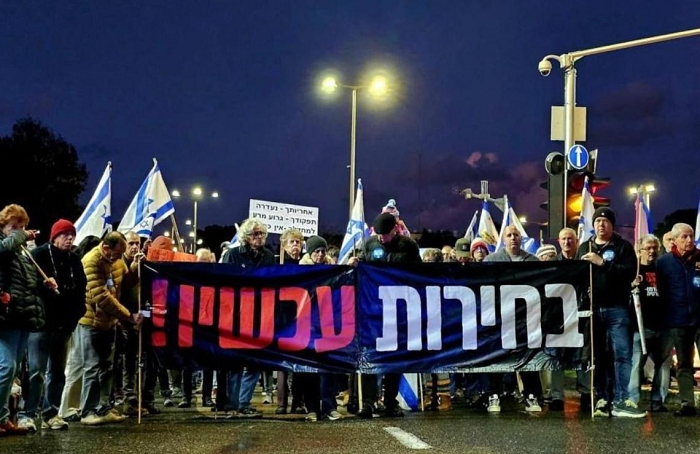 وفي المقابل تشهد البلاد يوميًا مظاهرات تطالب بإجراء انتخابات فورية، وتتهم رئيس الحكومة، بنيامين نتنياهو، باجهاض أي محاولة لعقد اتفاق بشأن صفقة التبادل وإعادة المختطفين.