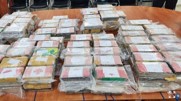 وقالت الشرطة انه من أجل إخفاء كون الحمولة كوكايين، تم الصاق ملصقات عليها الأعلام الكندية على علب خاصة ظهرت على شكل منتجات غذائية.