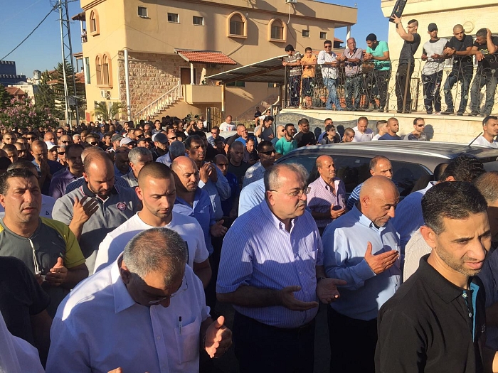 قال النائب د. أحمد الطيبي، رئيس العربية للتغيير - القائمة المشتركة، خلال مشاركته في جنازة الشهيد محمد محمود طه، الذي ارتقى شهيدًا بعد تعرّضه لاطلاق النار من قِبَل شرطي يوم أمس، بأن حياة المواطن العربي في دولة اسرائيل الذي يخرج للتظاهر تكون معرضة لخطر القتل على يد أفراد الشرطة الذين يتعاملون مع المجتمع العربي كعدو يجب محاربته.
