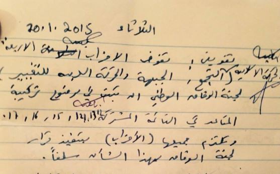 صورة عن النص الوحيد المعتمد لتفويض لجنة الوفاق، الذي وقعته الأحزاب الأربعة يوم الثلاثاء، وتراجع عنه التجمع اليوم (مؤقتًا). هناك نصوص اخرى يجري نشرها، لكنها لم تُعتمد من قبل لجنة الوفاق، وبالتالي الصورة المرفقة اعلاه هي النص الوحيد المعتمد.