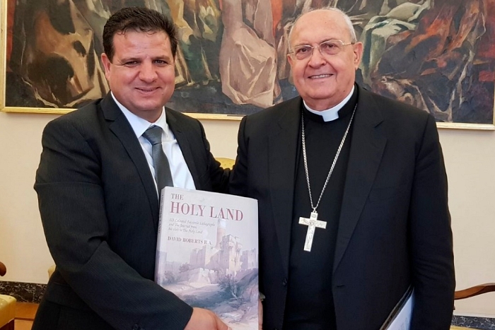 سلّم رئيس القائمة المشتركة النائب أيمن عودة رسالة لقداسة البابا فرنسيس حول وضع المواطنين العرب في إسرائيل، وكذلك هدايا مكونة من صورة للسيدة العذراء في مدينة الناصرة، فخّار من الناصرة وديوان محمود درويش، وذلك في حاضرة الفاتيكان.