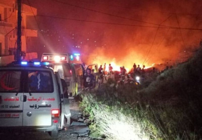 من موقع القصف في جناتا اللبنانيةوأفاد الدفاع المدني في جنوب لبنان بأن هناك ضحية وعشرات الجرحى من المدنيين في الغارة إلتي استهدفت بلدة جناتا.