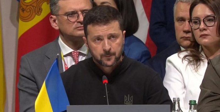 زيلينسكي في قمة السلام المنعقدة في سويسرا | تصوير: شاشة