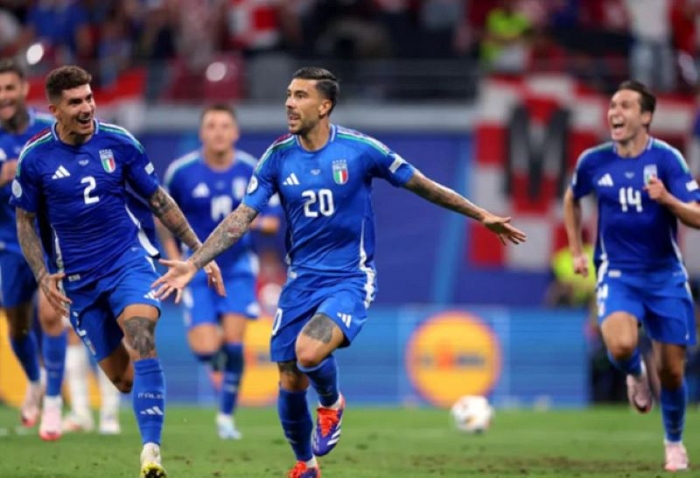 ماتيا زاكايني بعد احراز الهدف القاتل لإيطاليا