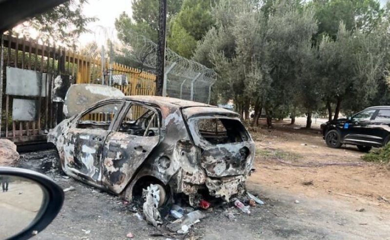 احتراق سيارة على مدخل كيبوتس بئيري