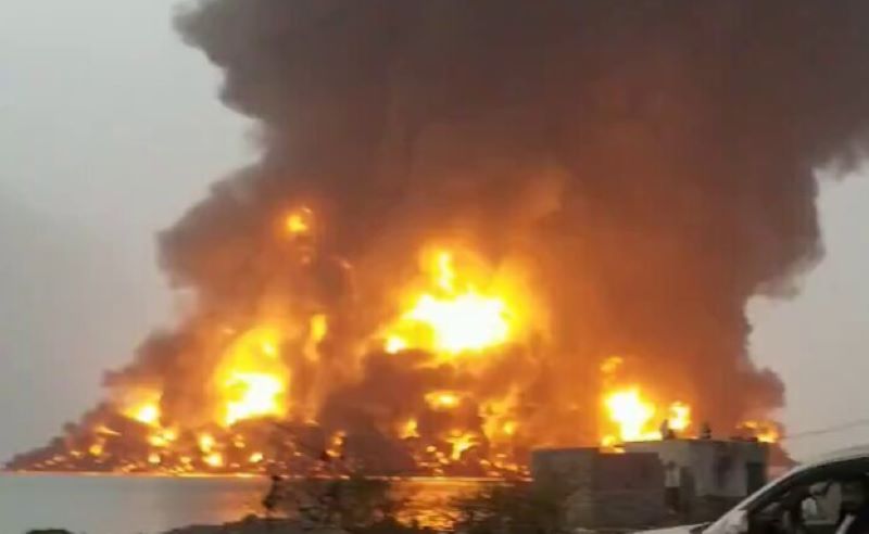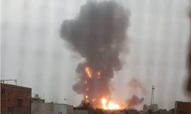 نشوب حريق كبير في ميناء الحديدة واستهداف كهرباء المحافظة وخزانات مازوت الكهرباء
