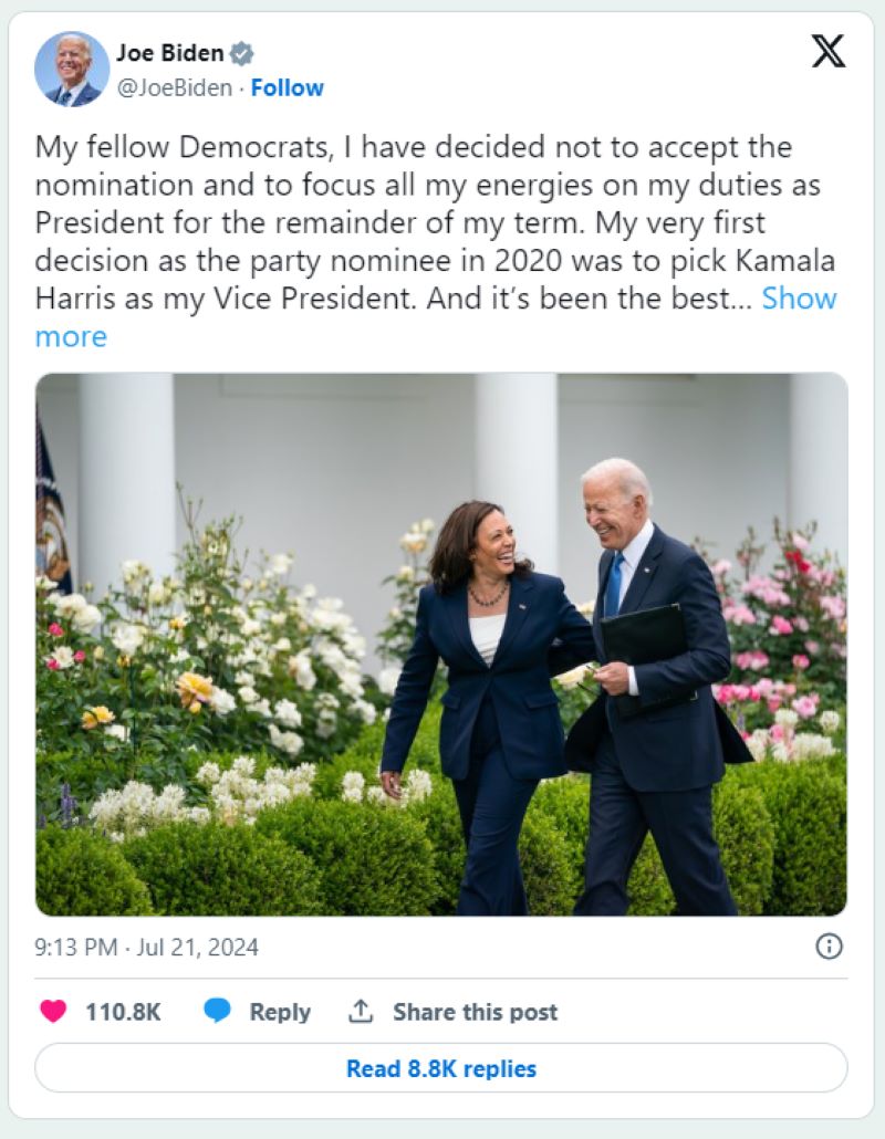 منشور استقالة بايدن على منصة X