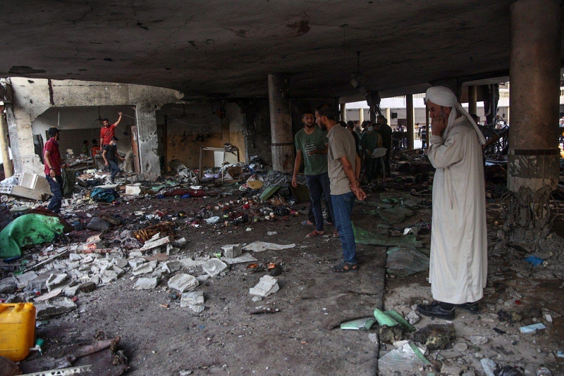 6 آلاف رطل من المتفجرات: قصف النازحين بمدرسة "التابعين" للنازحين بشكل مباشر في أثناء تأديتهم صلاة الفجر - تناثر أشلاء المصلين والنازحين ● الجيش يدعي وجود قيادة عسكرية لحماس داخل المدرسة، والفلسطينيون ينفون: رواية مليئة بالأكاذيب والمعلومات المزيفة"