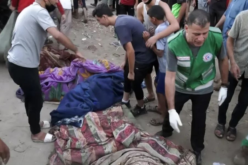 وقال الدفاع المدني في القطاع إن القصف الاسرائيلي استهدف في المدرسة طابقين، الأول كان يؤوي النساء والأرضي كان مصلى للنازحين. وأشار إلى أن اسرائيل استهدفت 13 مركزا لإيواء النازحين منذ بداية الشهر الحالي، وطالب العالم بالتدخل الفوري لوقف المجازر ضد المدنيين العزل في مراكز الإيواء.