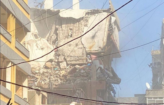 المبنى بعد استهدافه في الضاحية الجنوبية لبيروت