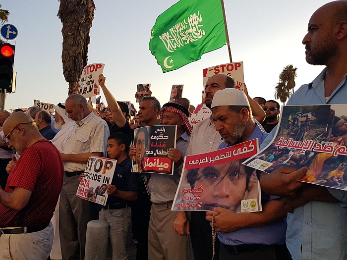 نظمت الحركة الإسلامية في البلاد وذراعها السياسية القائمة العربية الموحدة ، نظمت تظاهرة احتجاجية أمام سفارة ميانمار بتل أبيب مساء اليوم شارك بها المئات من النساء والرجال، وذلك احتجاجا ورفضا للجرائم والمجازر التي ترتكبها حكومة ميانمار وجيشها ومجموعات بوذية متطرفة بحق الأقلية الروهينغية المسلمة في اقليم أراكان في بورما.