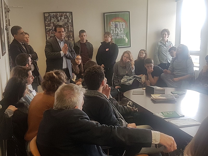 التقى النائب أيمن عودة رئيس القائمة المشتركة نحو ٥٠ شابًا يهوديًا اسرائيليًا بالمرحلة الثانوية حول فكرة رفض الخدمة في الجيش الاسرائيلي.