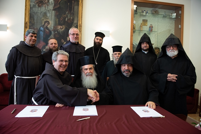 نحن رؤساء الطوائف المسيحية المسؤولين عن الستاتو كوو في كنيسة قيامة سيدنا يسوع المسيح نعلن بفرح وارتياح كبير اتفاقنا للبدء بمشروع ترميم وتأهيل أساسات القبر المقدس وبلاط كنيسة القيامة.