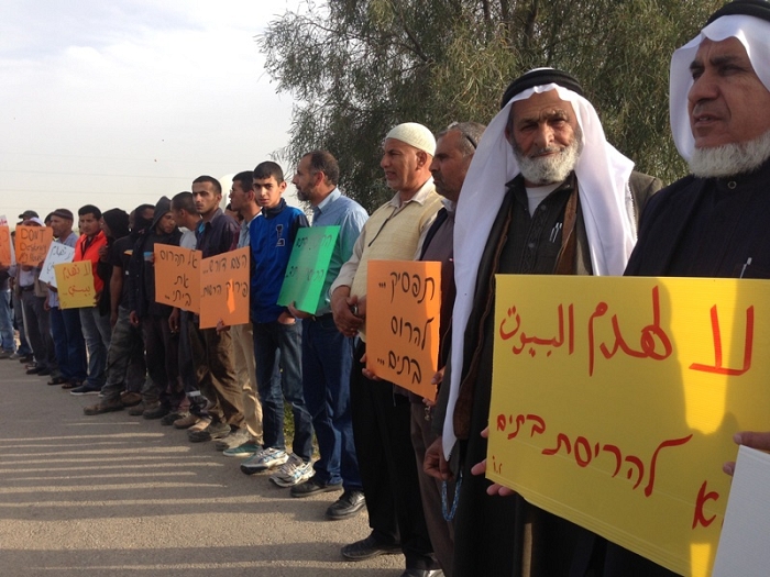 وقد شارك في قادة الوسط العربي في الجنوب، وشخصيات مختلفة، وتأتي هذه التظاهرة احتجاجا على هدم البيوت التي زادت حدتها في الآونة الاخيرة، وتخريب المزروعات من قبل السلطات الاسرائيلية التي اصبحت ظاهرة شبه يومية، علما ان من يشارك في تخريب هذه المزروعات ما يسنى "بالدوريات الخضراء"، كما ان مصادرة الاراضي ازدادت في الآونة الاخيرة.