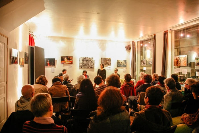 وكانت الفقرة الختامية من هذا البرنامج الثقافي أمسية شعرية مهداة للشاعر محمود درويش بمناسبة يوم ميلاده الذي أضاء فيها الحاضرون شموعاً لعيد ميلاده 74. بدأت الامسية بكلمة للفنان روحي عيادي شكر فيها الحضور الذي لبى الدعوة وحضر من كل ضواحي ليون لاستحضار روح زيتونة المنفى درويش وقال أن مؤسسته أرت دريمز تفتخر بإقامة أمسية في يوم ميلاده للجمهور الفرنسي الذي طالما أحب فلسطين ورمز نضاله محمود درويش الذي تجاوز حدود فلسطين والعرب ليصبح شاعراً عالميا ورمزا انسانيا من الشعراء العظماء.