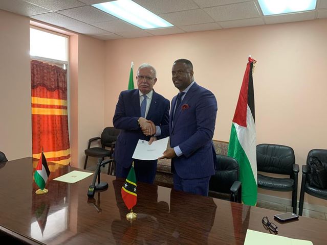 وتبع هذا الاعتراف مباشرة توقيع وزيري الخارجية على بيان مشترك لإقامة علاقات دبلوماسية على مستوى سفراء بين البلدين، حيث اكد المالكي ان دولة فلسطين على استعداد لترشيح سفيرا لها لدى سانت كيتس ونيفيس خلال ايّام معدودة.