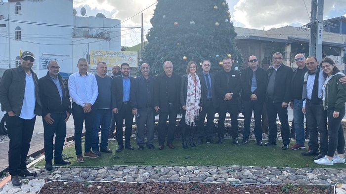 متضامنًا ومهنئًا بمناسبة عيد الميلاد المجيد ومستنكرًا لعملية احراق الشجرة التي ترمز للعيد، زار اليوم الثلاثاء وفد من التجمع الوطني الديمقراطي، بلدة الجديدة-المكر، متمثلًا بأمينه العام السيد مصطفى طه والكتلة البرلمانية للتجمع، النواب د.مطانس شحادة، د.هبة يزبك وسامي ابو شحادة ومسؤول المنطقة السيد محاسن قيس بالاضافة الى اعضاء المكتب السياسي السادة رياض محاميد ومحمد صبح وبمرافقة نائب رئيس المجلس المحلي في جديدة - المكر عن التجمع الوطني الديمقراطي السيد مروان ميعاري ونشطاء الفرع في البلدة واللجنة الشعبية.