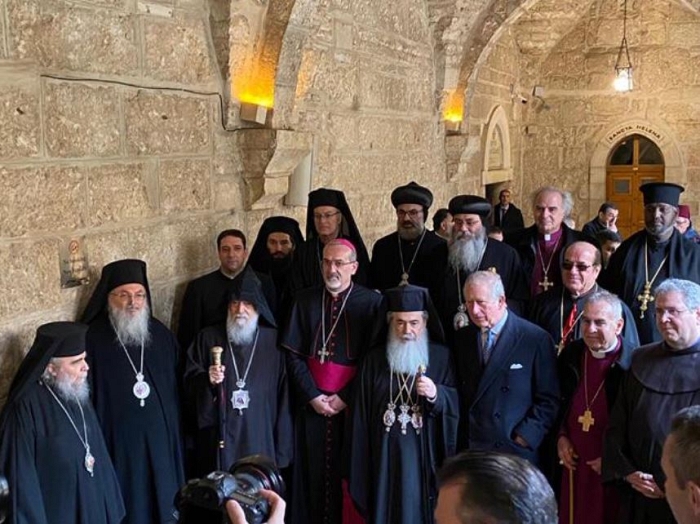 استقبل رؤساء كنائس الأراضي المقدسة اليوم صاحب السمو الملكي وولي العهد البريطاني الأمير تشارلز بكنيسة المهد في مدينة بيت لحم، كما رافقوه في جولة داخل الكنيسة وأطلعوه على أعمال الترميم الجارية فيها.