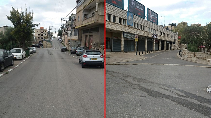 بدت شوارع الناصرة، مساء اليوم الاربعاء، شبه خالية من السيارات والمارة، حيث تلتزم أغلبية اهالي المدينة البقاء في البيوت.