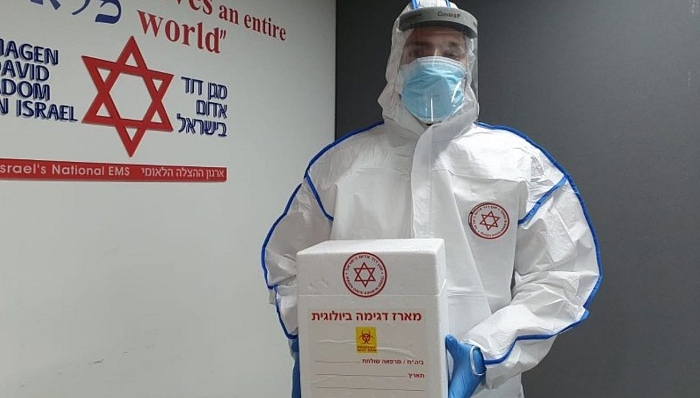 (فحوصات كورونا - الصورة بلطف من المكتب الاعلامي لنجمة داوود الحمراء)