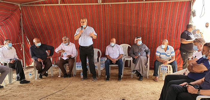 تنظيم وفود من النقب وخارجه الى خيمة الاعتصام القائمة على اراضي خربة الوطن.