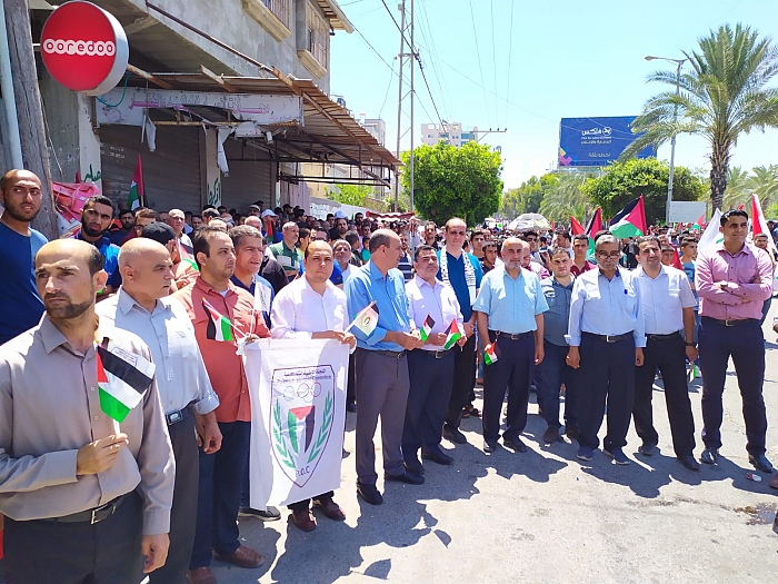 شارك المجلس الأعلي للشباب والرياضة و اللجنة الأولمبية الفلسطينية واتحاداتها الرياضية والأندية في مسيرة يوم الغضب الجماهيري الرافضة لصفقة القرن ومواجهة قرارات الضم.