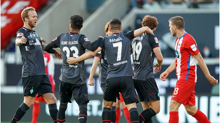 واستعاد بريمين تقدمه في الدقيقة 90 عبر لودفيج أوجوستينسون الهدف الثاني لبريمن، لكن هايندهايم أدرك التعادل مرة أخرى في الوقت بدل الضائع، من ضربة جزاء انبرى لها كلينيست بنجاح.