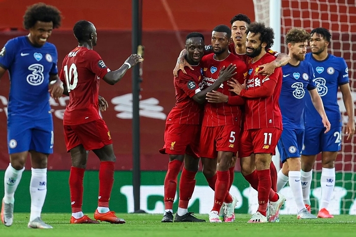 توج ليفربول موسمه المميز، بفوزه الكبير على تشيلسي 5-3 في قمة مباريات الجولة 37 من الدوري الإنجليزي لكرة القدم.