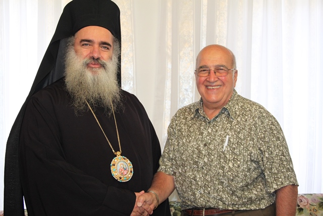 سيادة المطران عطا الله حنا رحب بزيارة الدكتور مازن الخالدي الجراح الفلسطيني المعروف في امريكا وقال له بأن مدينة القدس تفتخر بأبناءها حيثما كانوا واينما وجدوا وانت وامثالك تشكلون فخرا واعتزازا لهذه المدينة التي منها انطلقتم وفيها مشيتم خطواتكم الاولى حتى وصلتم الى ما وصلتموه من نجاح باهر وتقدم علمي نفتخر به جميعنا .