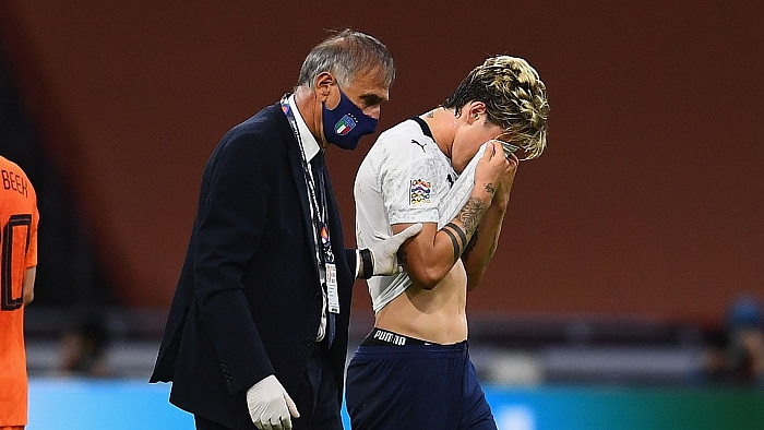 وعكرت هذه الإصابة فرحة المنتخب الإيطالي الذي عاد بالنقاط الثلاث من أمستردام، بعد فوزه على هولندا 1-0، ضمن الجولة الثانية من دوري الأمم الأوروبية.