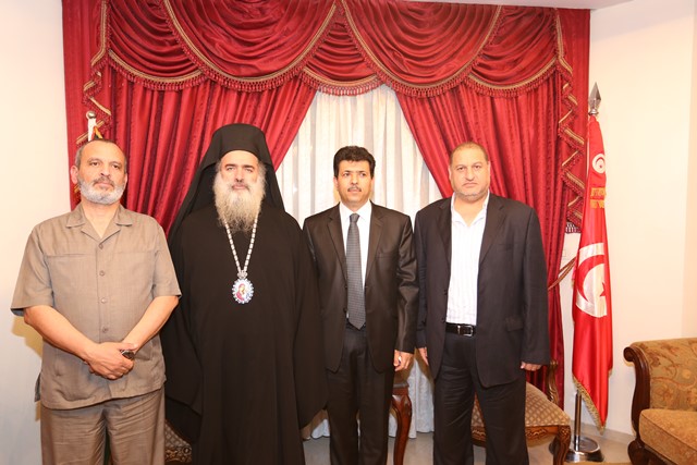 سعادة السفير التونسي شكر سيادة المطران على زيارته وعلى تضامنه وتعازيه ناقلا له تحية القيادة السياسية في تونس ومحبة واحترام الشعب التونسي الشقيق مؤكدا بأن تونس هي دولة مدنية تؤمن بالتعددية وترفض التطرف والعنف والكراهية ، وان الارهاب الذي يستهدف تونس لن يؤثر على مسيرة الاصلاح والخير والرقي والتطور من اجل تونس الخضراء .