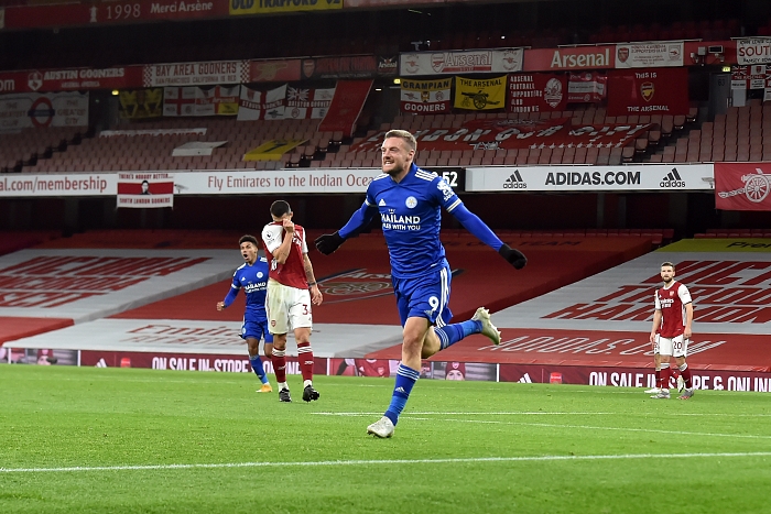 هدف المباراة الوحيد جاء عن طريق الهداف الدولي جيمي فاردي في الدقيقة 80، بعدما حول عرضية زميله جنكيز إندير، برأسه إلى شباك أرسنال.